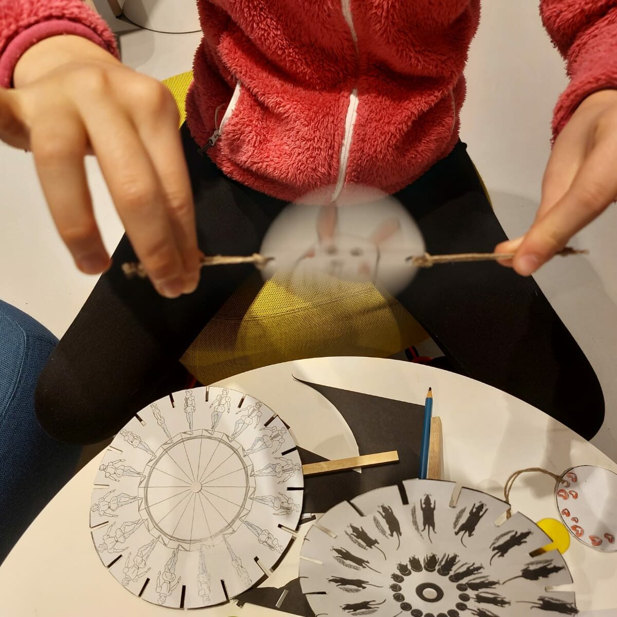 I laboratori hanno previsto l’esplorazione di alcuni giochi ottici ispirati al pre-cinema che permettono di animare disegni e sequenze di immagini – dal taumatropio e il fenachistoscopio fino al flip book – grazie al fenomeno della persistenza della visione sulla retina. Laboratori che combinano scienza e arte alla scoperta della magia dell’animazione.